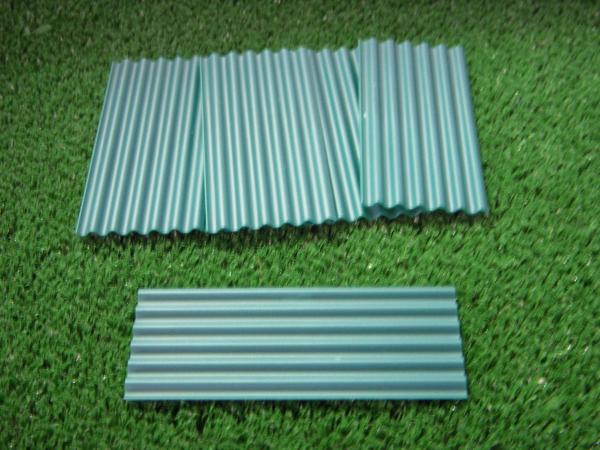 6 tôles ondulées vertes. Dimensions d'une tôle 78.16mm x 34.2mm.