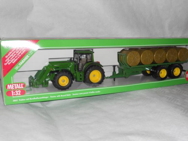 tracteur john deere avec plateau à fourrage