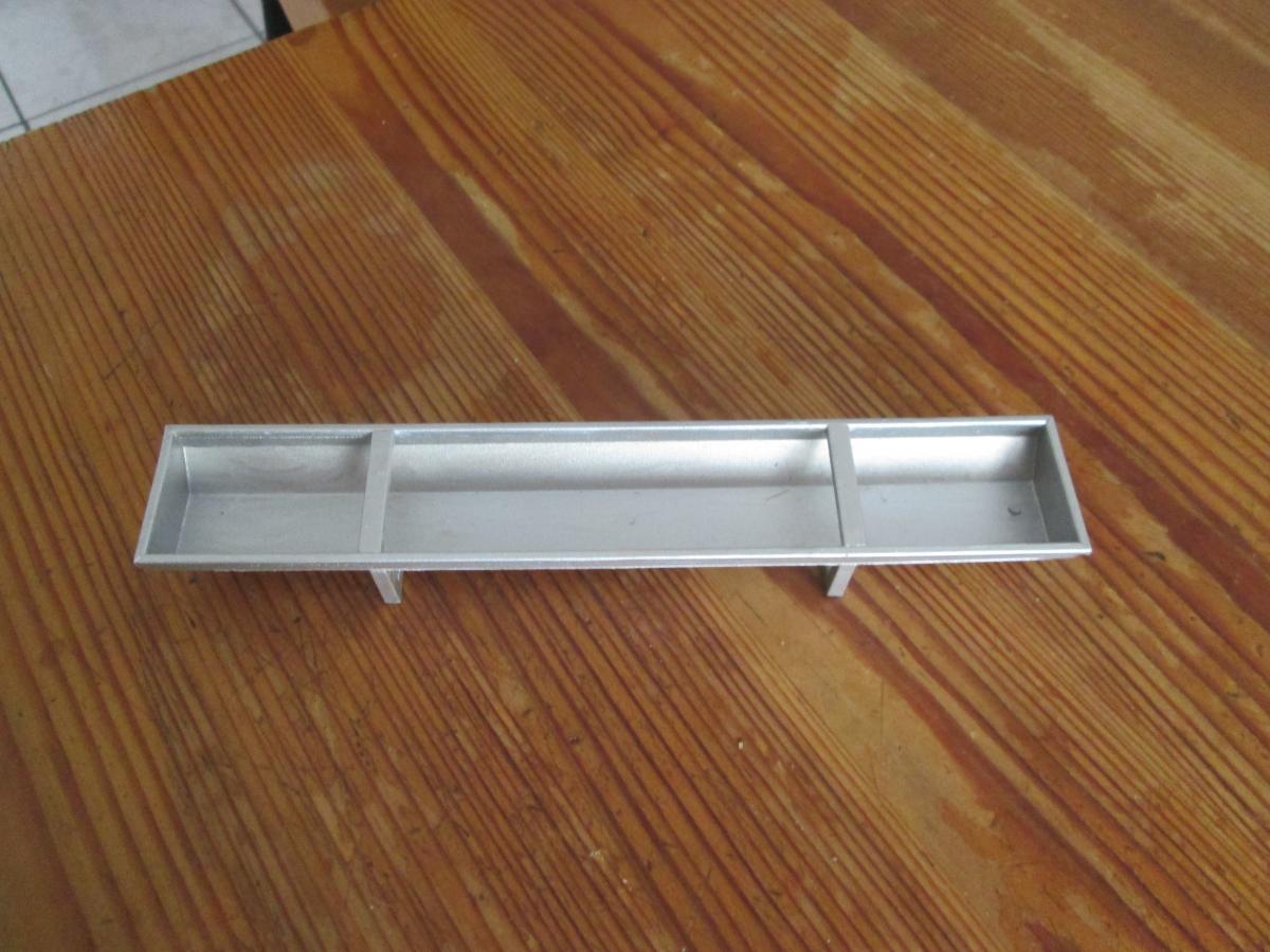 long = 16.3 cm , large = 2.8 cm x 2 cm de haut , j'en possède 2 de la même taille pour info , idéal pour mettre dans une stabule ou dans une pature , peint en gris galvanisé