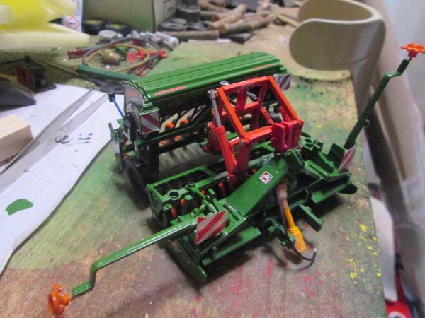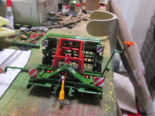 ajout d'un attelage collé sur le semoir, panneaux de sécurité, porte à court , traceurs fonctionnels, un peu fragile