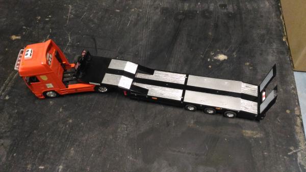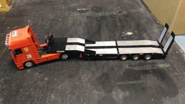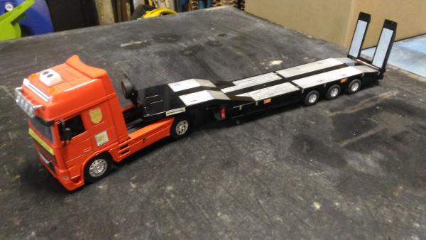 Porte engin siku non radiocommandé complet et en bon état général, modifié avec extincteur, gyrophares et panneau de convoi. Vendu avec sa boite d'origine