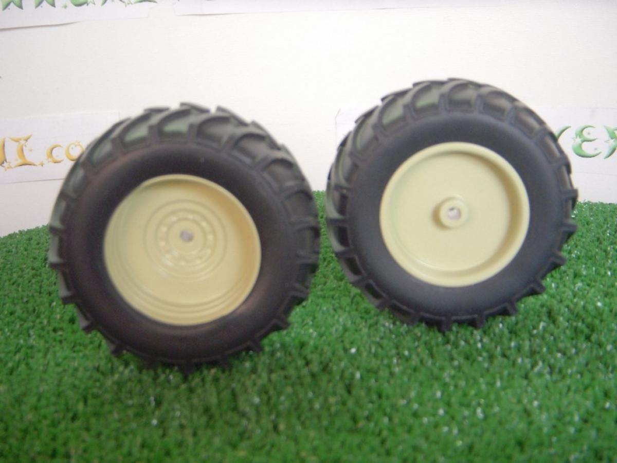 2 jantes aluminium arrière (beige) + 2 pneus pour International 1455 (Schuco)