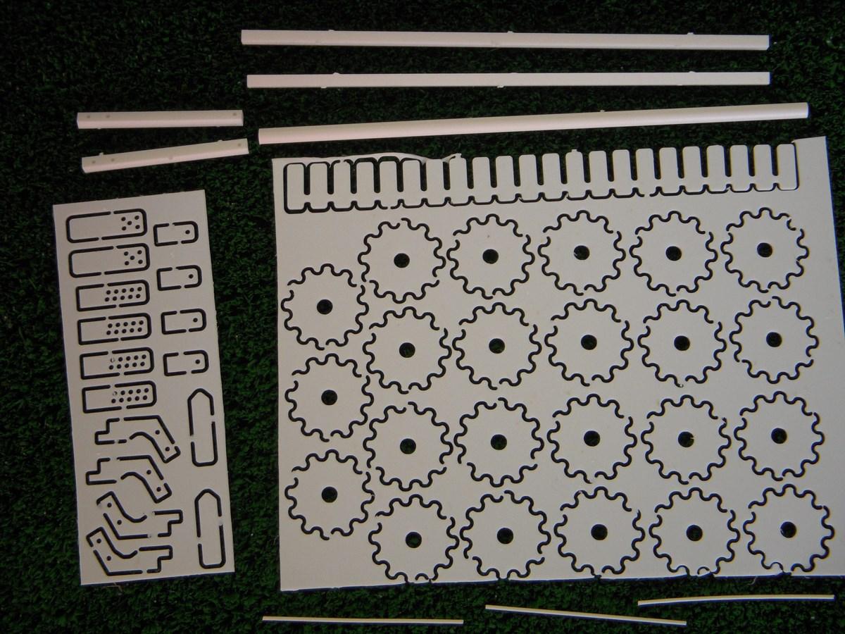 A monter et à peindre, kit composé de 44 pièces en styrène blanc, de 14cm de profilé rond plein 4mm et 5cm de profilé rond plein 1mm. Livré sans axes ni goupilles.
