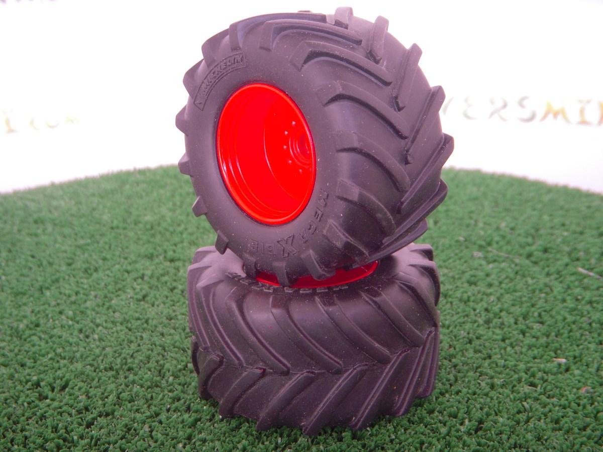 2 jantes aluminium arrière (rouge) + 2 pneus Michelin 1050 (FENDT 724)