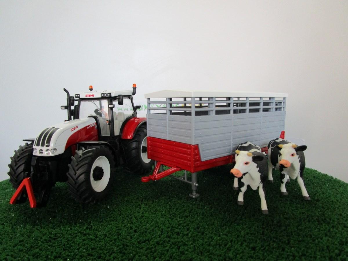 Tracteur STEYR CVT avec bétaillère et 2 vaches.