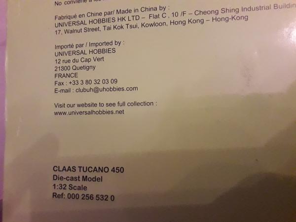 Moissonneuse batteuse CLAAS TUCANO 450 neuve boite d'origine échelle 1/32