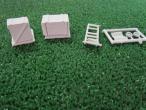 Diable de transport + 2 caisses, composé de 6 pièces en résine. A monter et à peindre. Échelle 1/35ème mais convient parfaitement au 1/32ème.