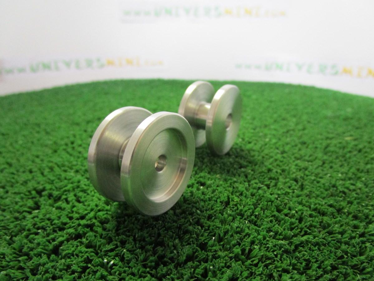Entraxe jumelage avant aluminium pour jumeler les roues étroites avant n°1 (Artisan32 référence 04209). Permet un écartement entre les roues correspondant à 50 cm à l'échelle 1.