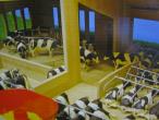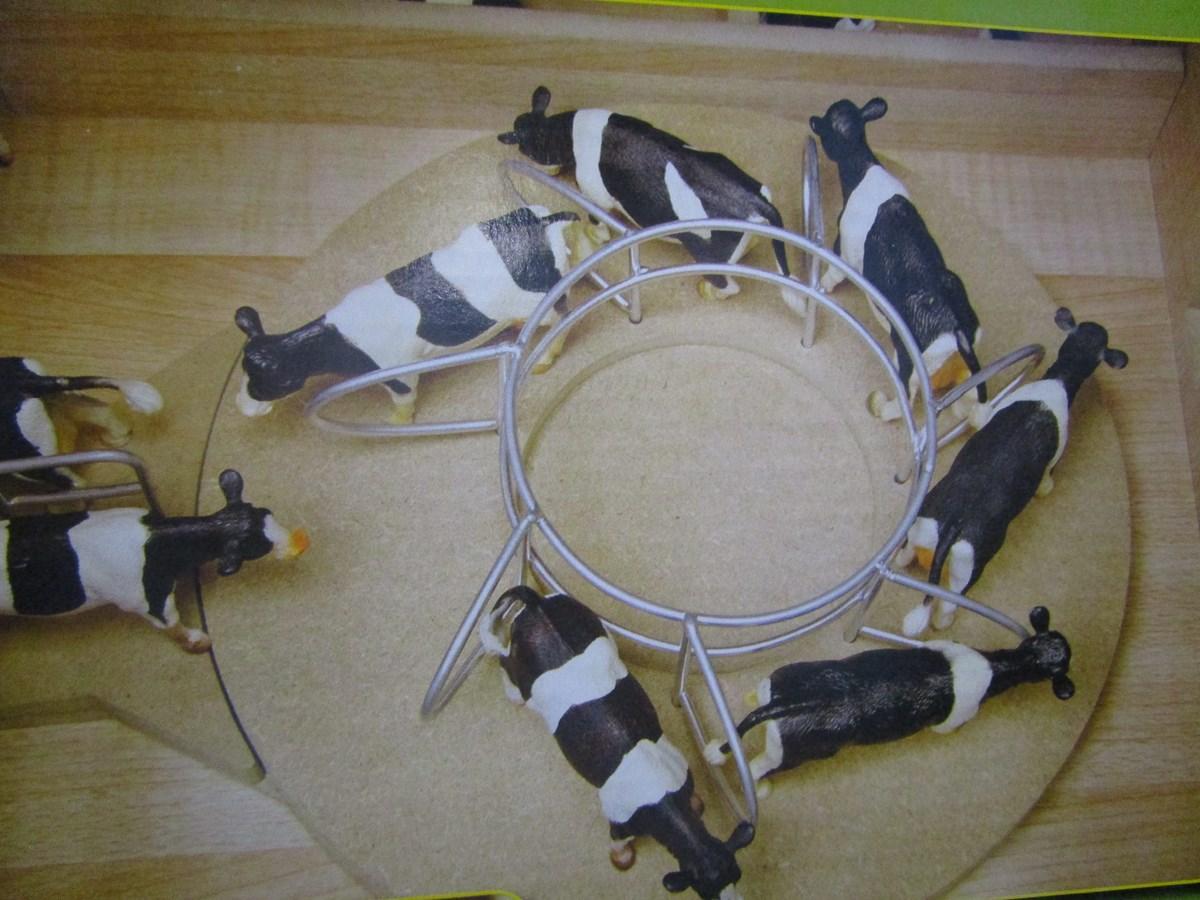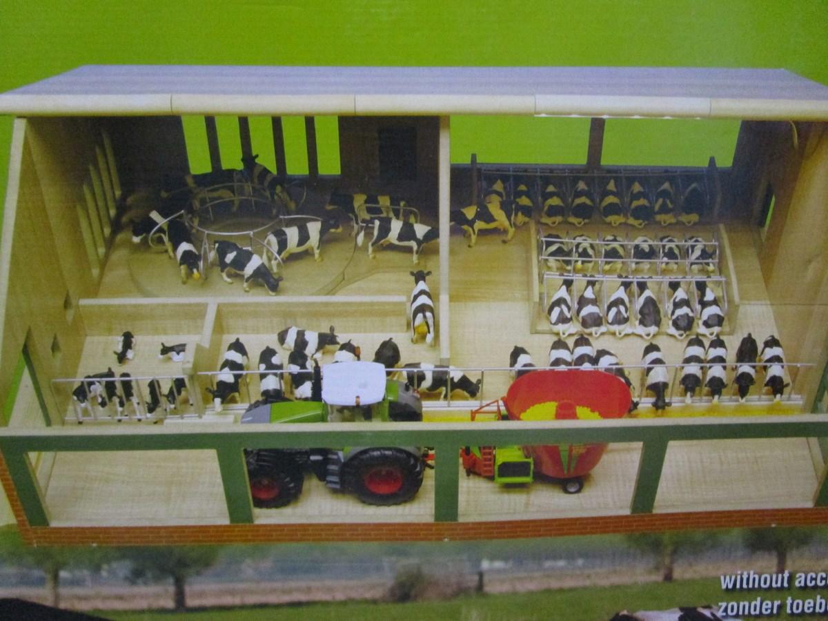 Stabulation + salle de traite rotative le tout en bois. Longueur 75 cm. Largeur 60 cm. Hauteur 27 cm. Accessoires et matériels agricoles vendus séparément.