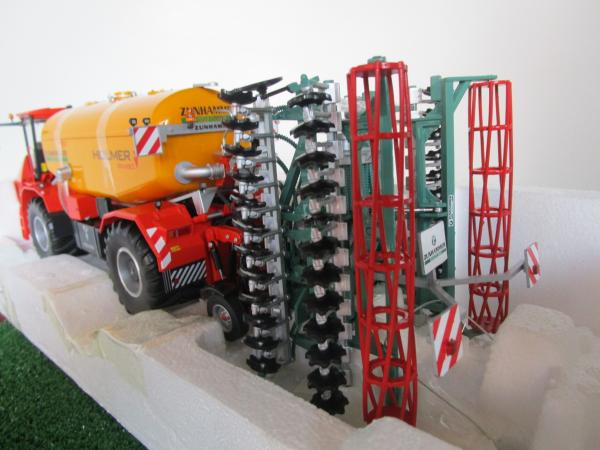 Machine bien détaillée mais reçue avec des pièces cassées (rampe d'éclairage arriere décollée, disques de mélange manquant, relevage arrière en 2 parties) donc un peu de travail de collage est de démontage avant de la mettre en exposition