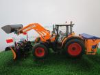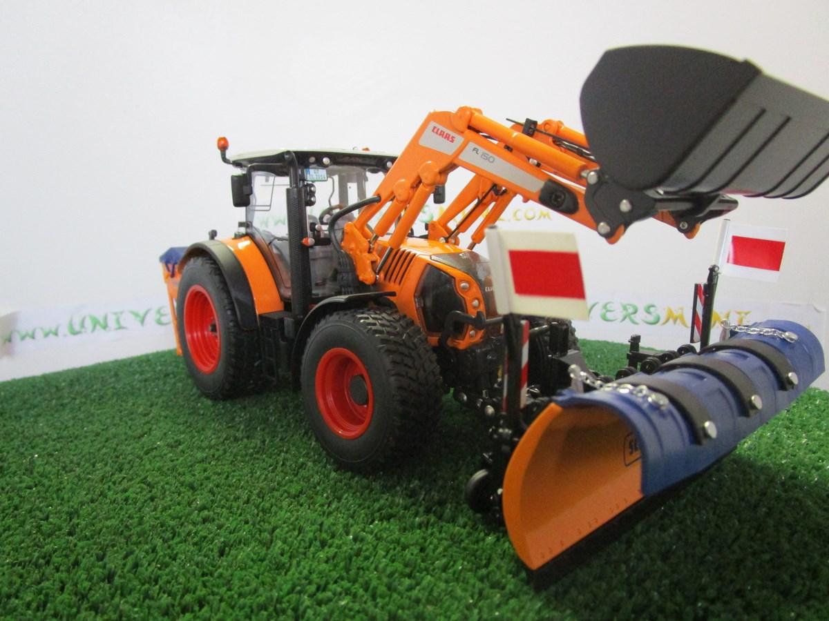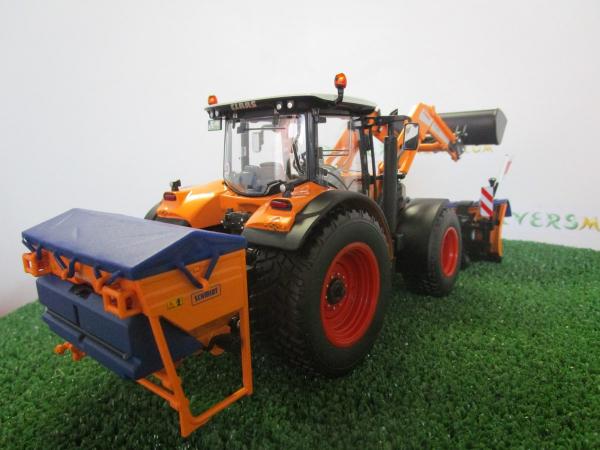Tracteur CLAAS Arion 640 communal avec chargeur, lame à neige Schmidt Tarron MS 32.1 et sableuse Schmidt Traxos FS 12. Livré avec une masse. Édition limitée à 1000 exemplaires.