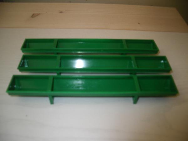 3 auges a bovins en métal et plastique.les dimensions sont de :16 cm de long et de 2.3 cm de large.