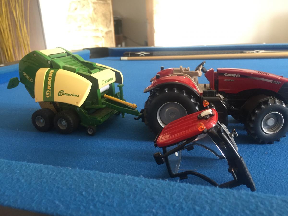 En bonus j'ajoute 20 ballots imitation paille comme neufs et une herse Centaur 6000 de la marque SIKU sur laquelle le support de roue est manquant.