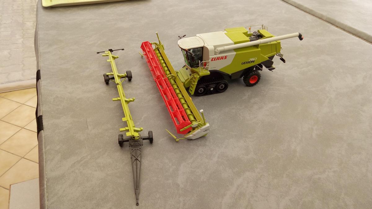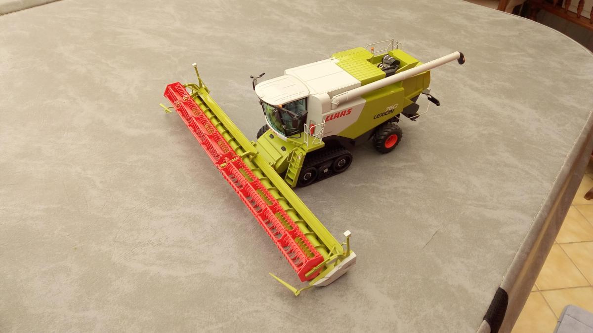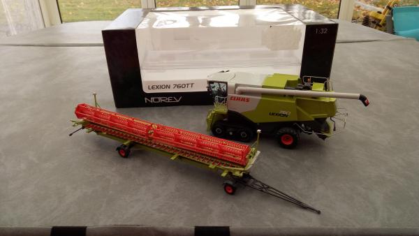 Moissonneuse Claas lexion 760 terra trac avec coupe et chariot vendu dans sa boite d'origine.