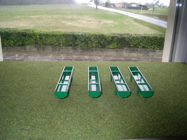 4 AUGES A BOVINS EN MÉTAL ET PLASTIQUE,PEINTURE VERTE .LONGUEUR 13cm LARGEUR 1.9 cm ET HAUTEUR 2.1 cm . AVEC VIS DE VIDANGE .D'AUTRE EN STOCK
