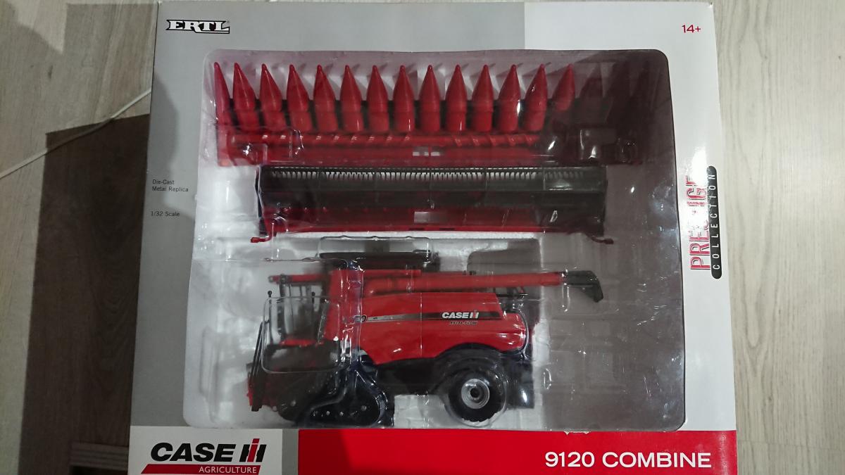 Moissonneuse case ih axial flow 9120 prestige collection ertl chenille avec coupe cueilleur à mais très bon état toujours exposé en vitrine