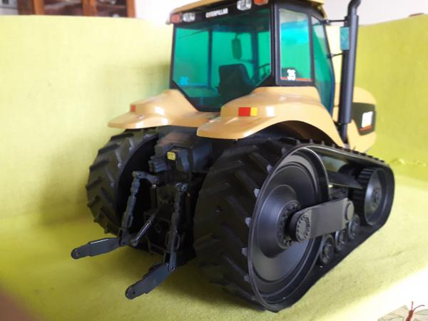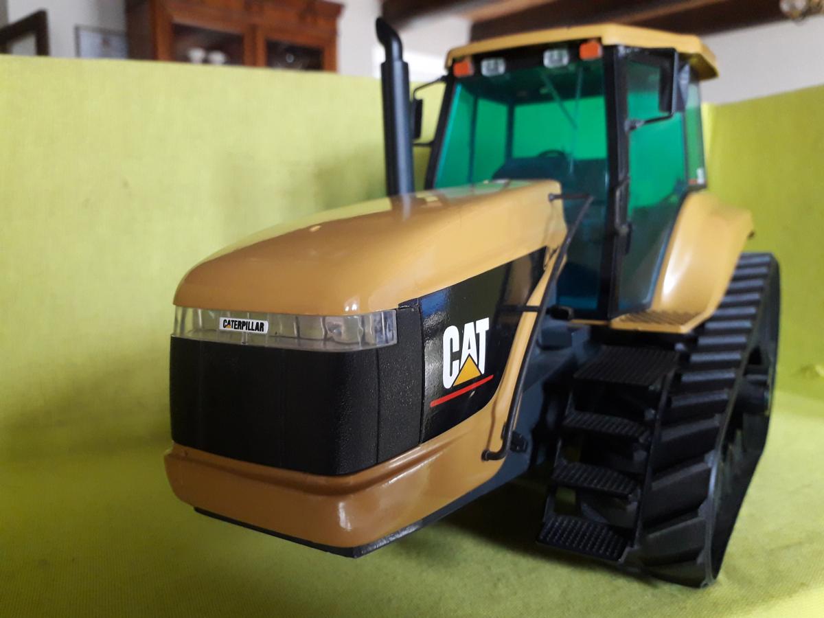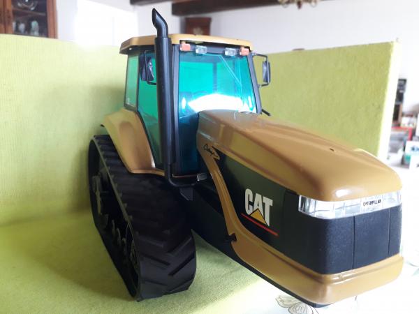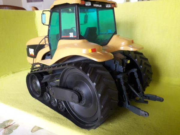 Tracteur à chenilles triangulaires, manque les 2 phares de travail sur les ailes arrière et rétroviseurs recollés.
