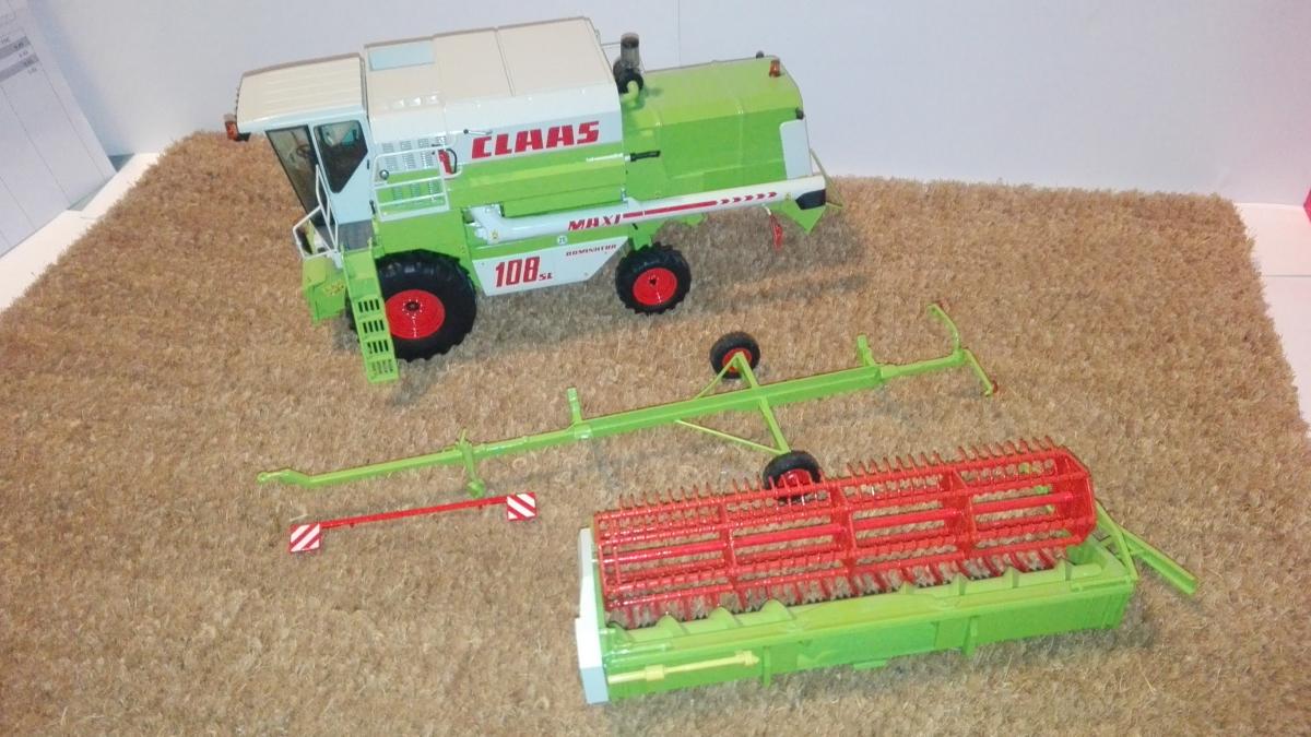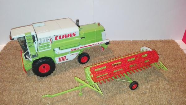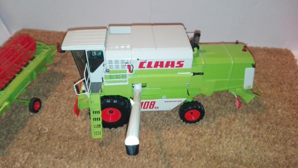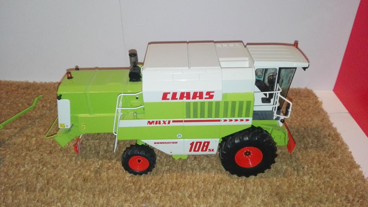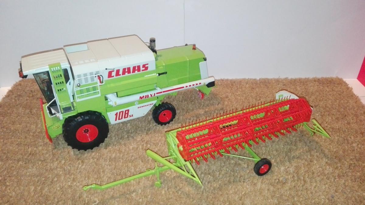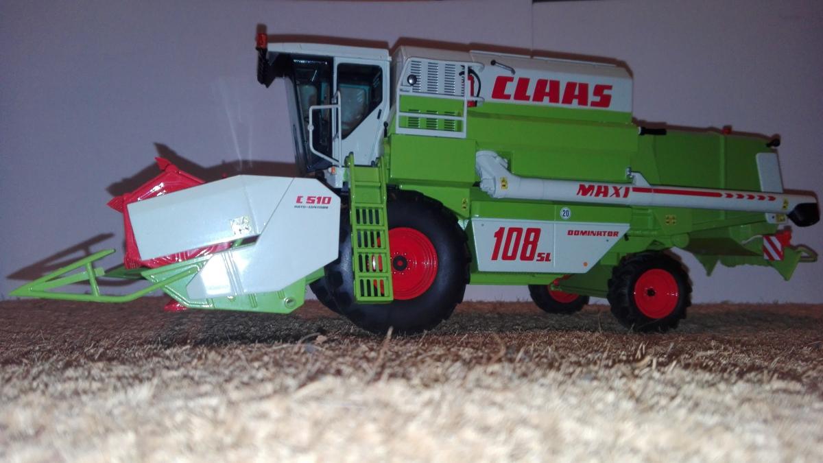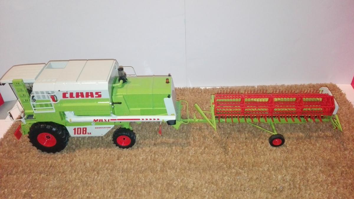 CLAAS DOMINATOR 108 SL MAXI de NOREV avec barre de coupe céréales C 510 auto contour