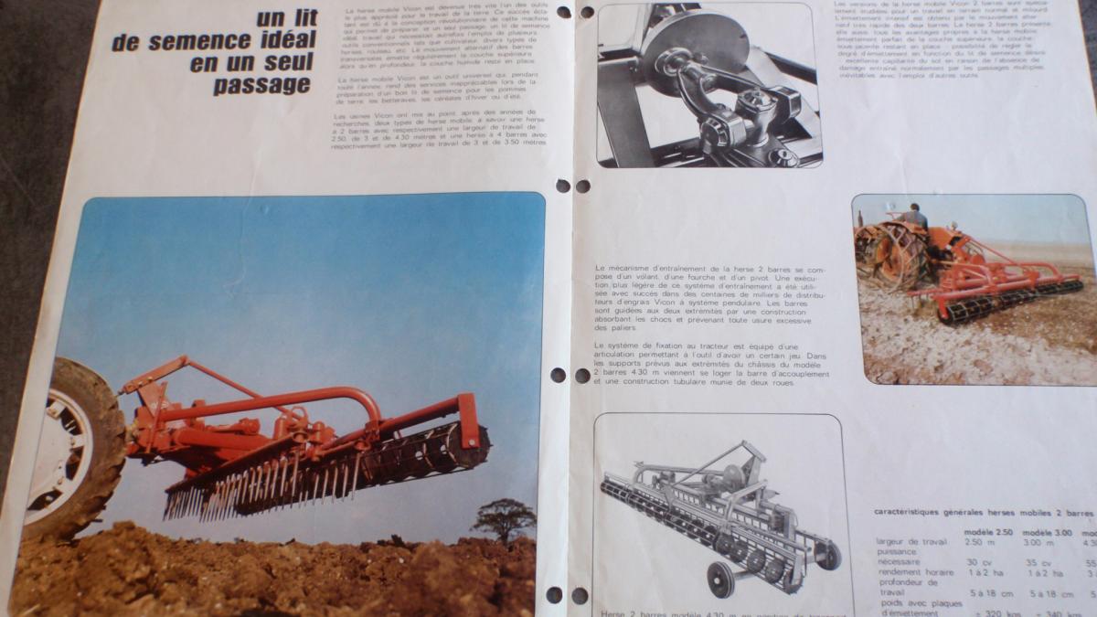 Prospectus herse Vicon( attention perforer car mis dans un classeur) deux feuilles recto verso