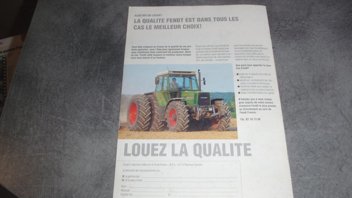 Prospectus tracteur FENDT gamme 1993 , quatre feuilles recto verso