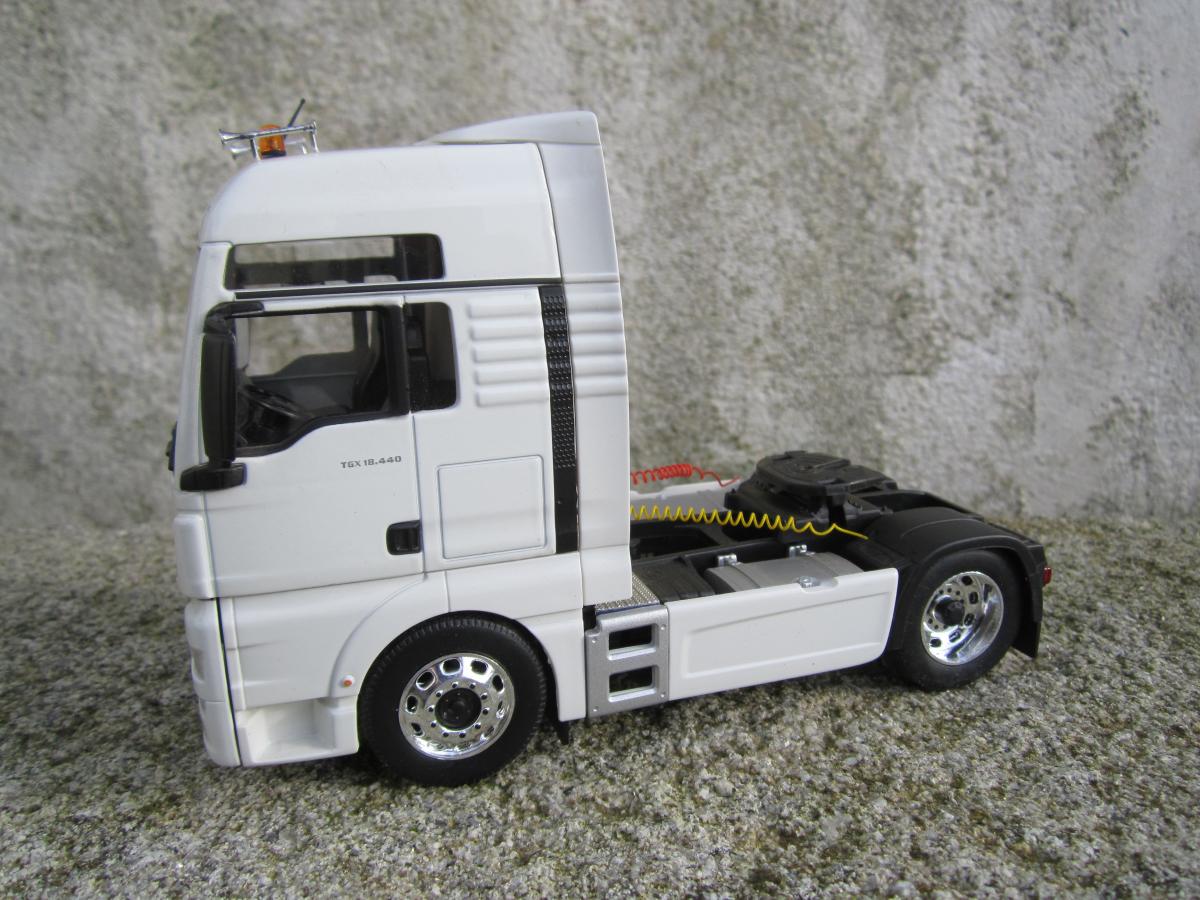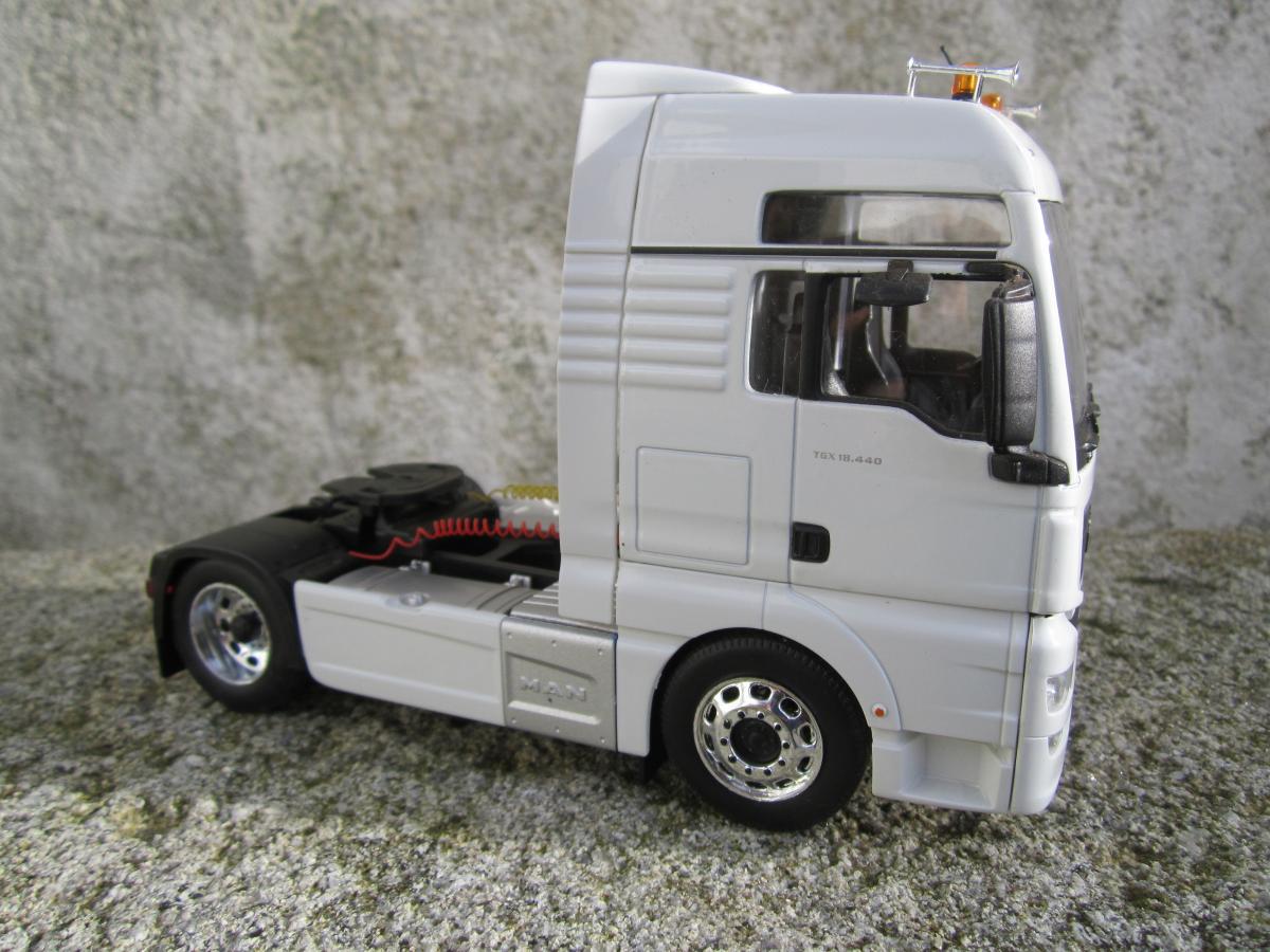 Man tgx 18.440 modifié , gyrophares x 2 , klaxon x2 , phares de travail arrière, disques vitesse, plaques immatriculation FR , flexible d'air ,antenne radio ,peinture moyeux de roues ,vendue en boite .