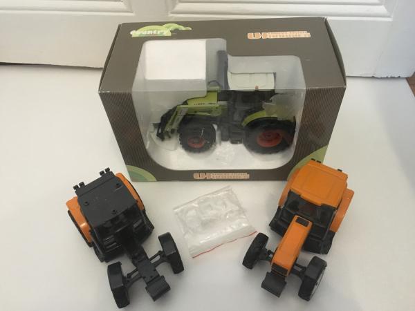 A vendre en l%u2019etat un pack comprenant un CLAAS ares 566rz avec deux RENAULT ares joal ainsi qu%u2019un kit pour fourche mailleux , le tout pour faire un joli RENAULT ares !