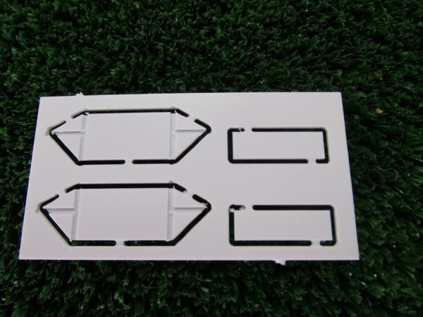 2 supports feux arrières en kit. A monter et à peindre. Vendu sans feux. Longueur 16.4mm. Hauteur 6.3mm. Profondeur 8.5mm.