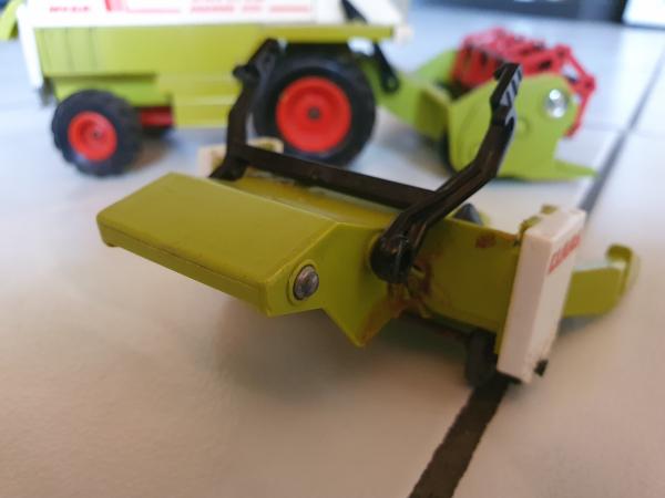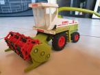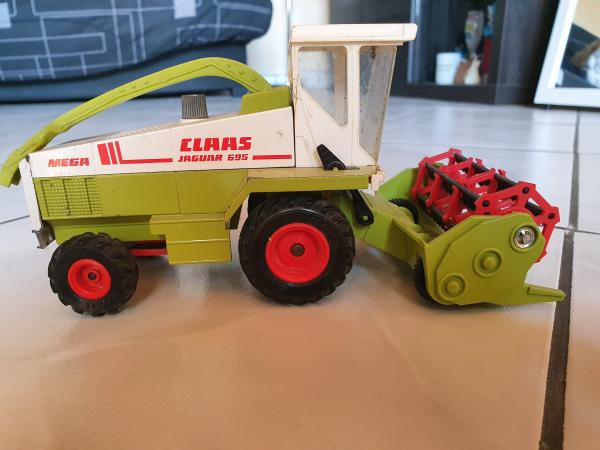 Ensileuse CLASS JAGUAR 695 MEGA . En état moyen: Quelque manque de peinture, manque intérieur de cabine,pare choc arrière cassé.Avec 2 barres de coupe. Une en bon état et l'autres a été recollée.Voir les photos.