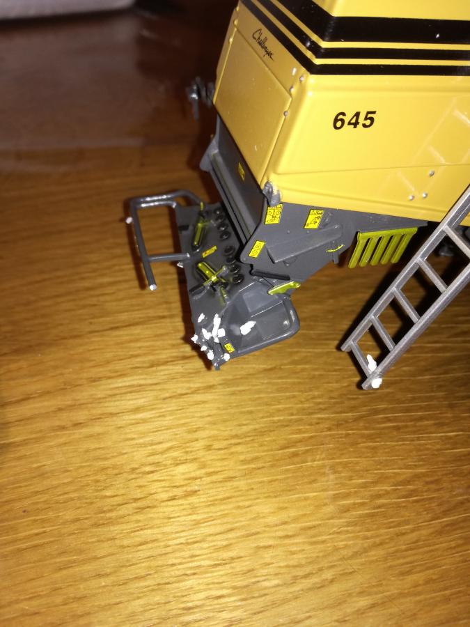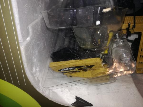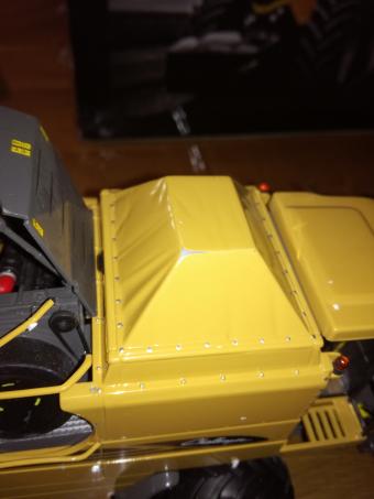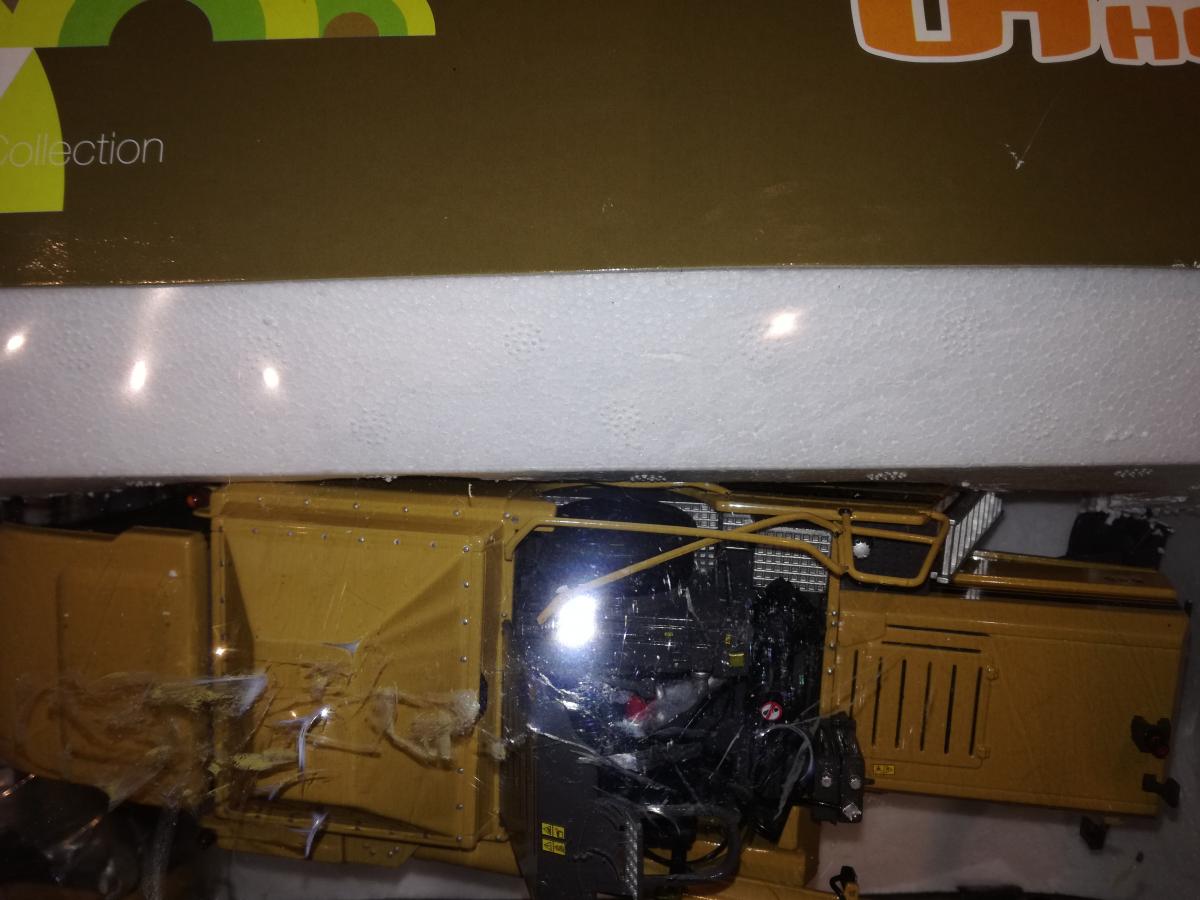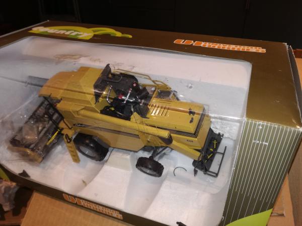 La moissoneuse est arrivée non attachée dans sa boite et n'a pas supporté le transport. Elle est donc endommagée, même si restée dans sa boite d'origine.