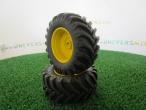 2 jantes aluminium avant (jaune) + 2 pneus n°2 pour John Deere 8530 Precision (ERTL). Diamètre pneu 53.9mm. Largeur 22.5mm.