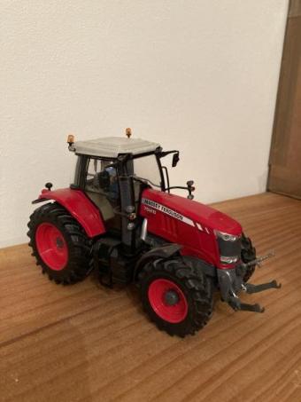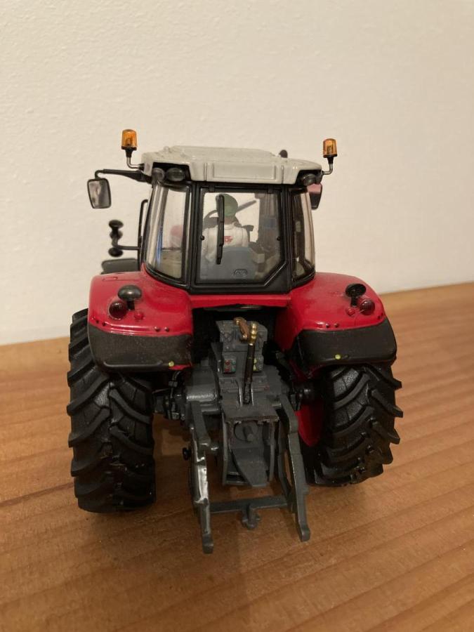 MF 7626 avec chauffeur, jantes rouges, roues avant braquent mais ne roulent pas