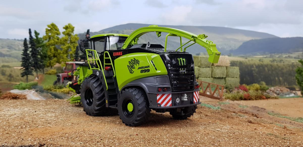 CLAAS jaguar de wiking. Peint comme édition monster. Modifié par moi. Roues, peinture et autocollants. Les roues arrière ne roulent pas vers l'avant ou vers l'arrière, mais elles roulent sur le côté.