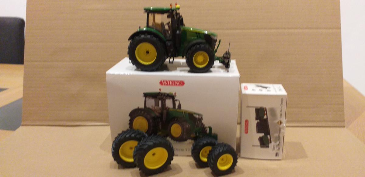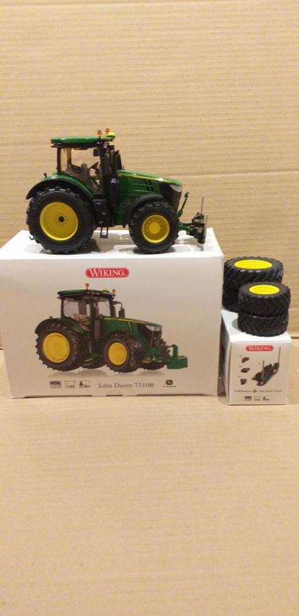 ENSEMBLE JOHN DEERE 7310R EQUIPE DE JANTES ALU ET PNEUS FARMMODELS +4 JANTES ET PNEUS D ORIGINE+MASSE AVANT AGRI BUMPER
