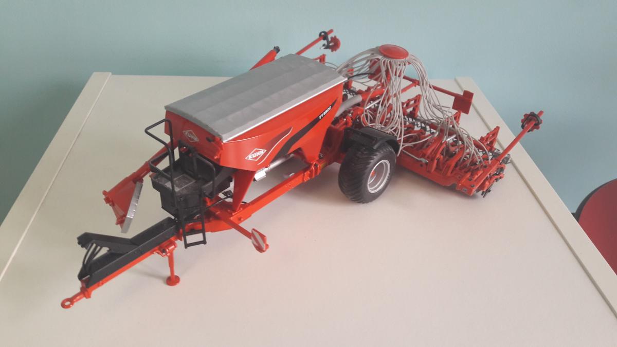 J'ai dû recoller les phares arrières, la petite barre noire qui maintient la vis de remplissage et les dernières parties des éléments semeurs de la partie gauche du semoir, les petites tiges noires. Ces pièces sont recollées avec de la superglue. Pour le reste, il n y'a aucune rayure ou défaut et on voit à peine que les pièces ont été recollé.