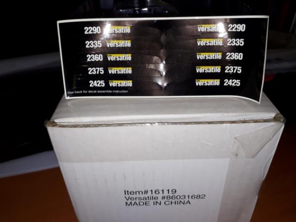 avec plusieurs autocollants aux choix fournis avec le tracteur VERSATILE 2290, 2335, 2360, 2375 et 2425