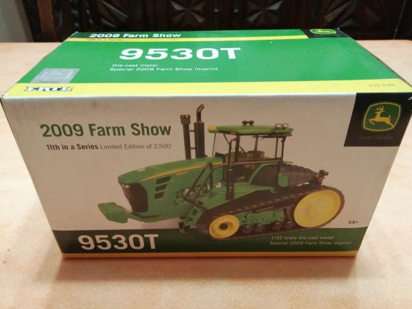 JOHN DEERE 9530T Farm Show 2009 (2500 exemplaires) et sa boite. Miniature comme neuve uniquement exposée en vitrine, boite en état correct. Pas de réservation, pas de vente à l'étranger.
