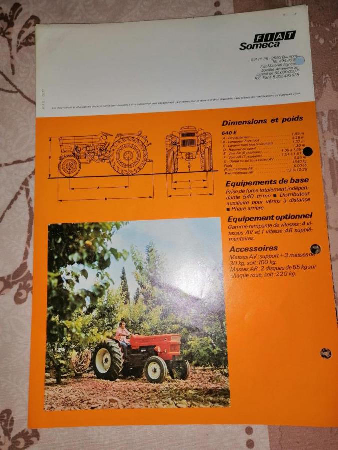 Prospectus FIAT /SOMECA 640 E double pages perforées