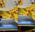La tôle est faite en impression 3D, la forme de la pièce fait que la qualité n'est pas irréprochable, mais pour combler un trou et faire propre, c'est amplement suffisant ! Le jaune est identique à celui de la machine.