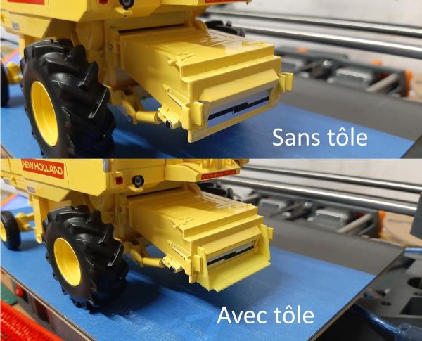 La tôle est faite en impression 3D, la forme de la pièce fait que la qualité n'est pas irréprochable, mais pour combler un trou et faire propre, c'est amplement suffisant ! Le jaune est identique à celui de la machine.