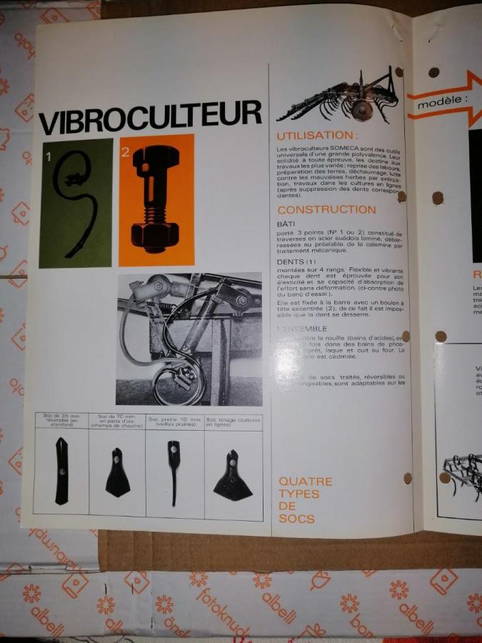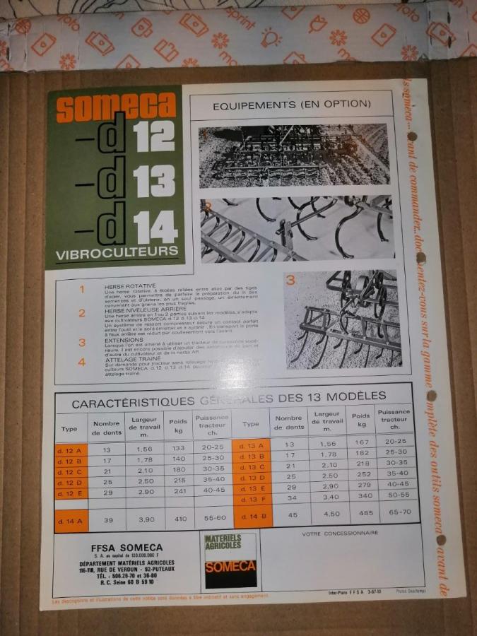 Prospectus vibroculteur SOMECA D12, D13, D14, double feuilles perforées.