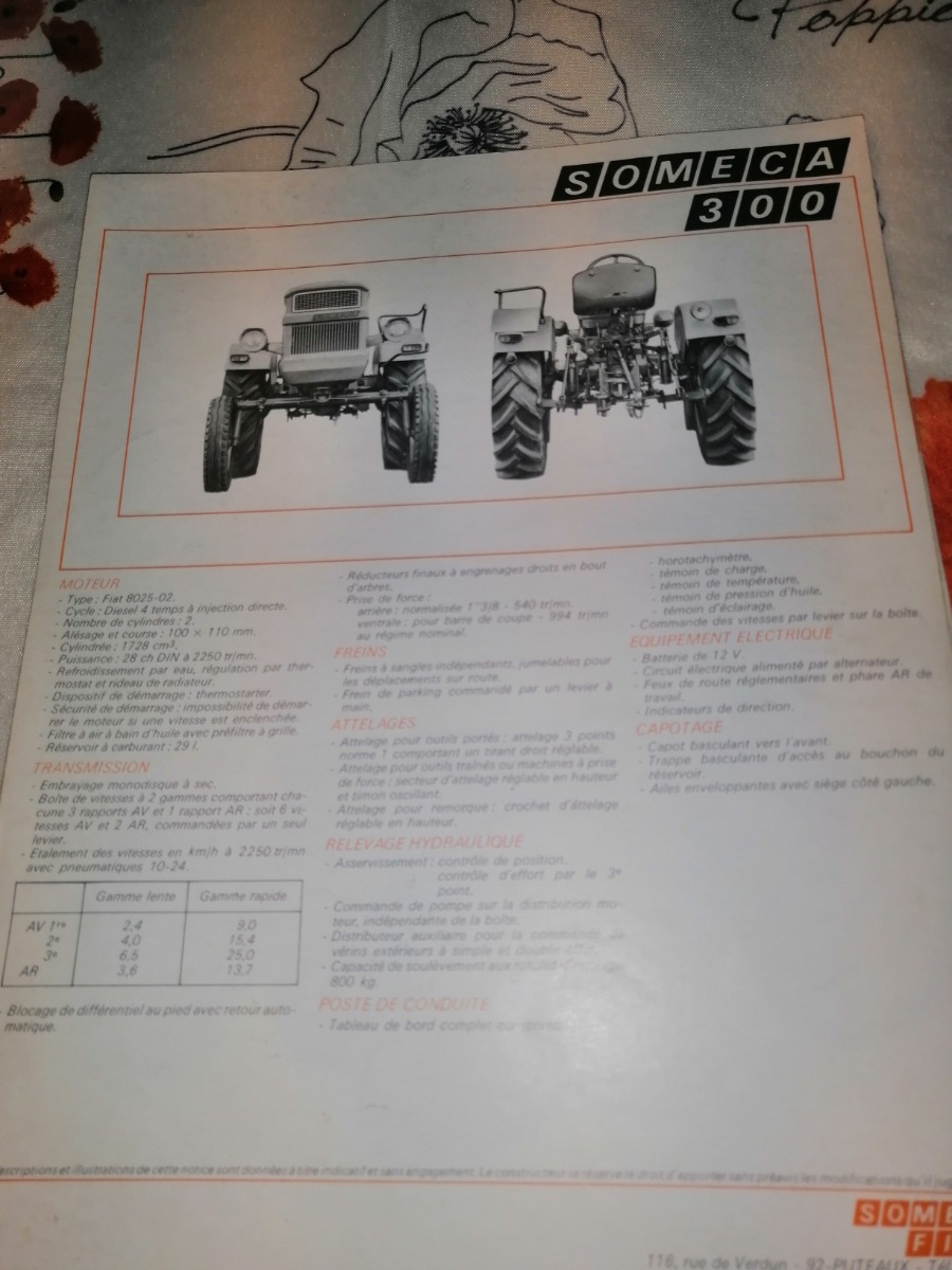 Prospectus tracteur FIAT SOMECA 300.