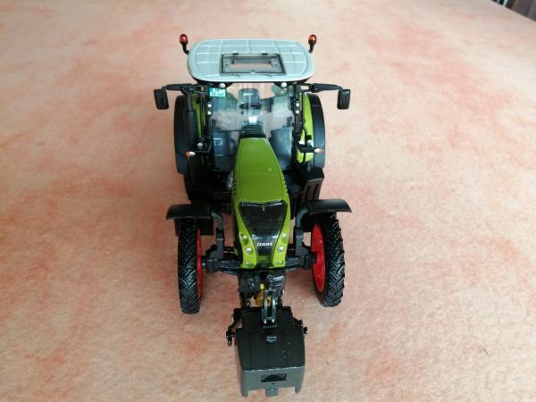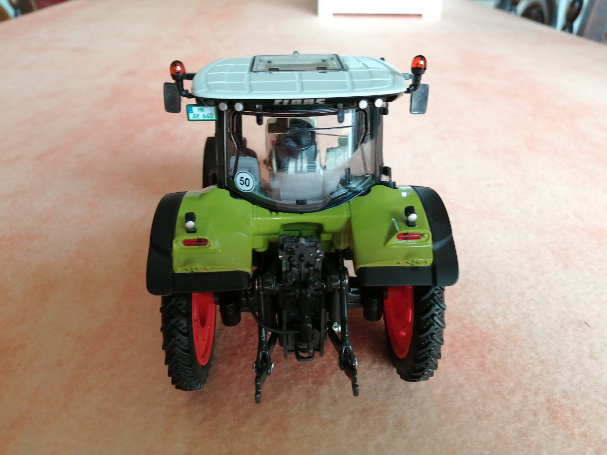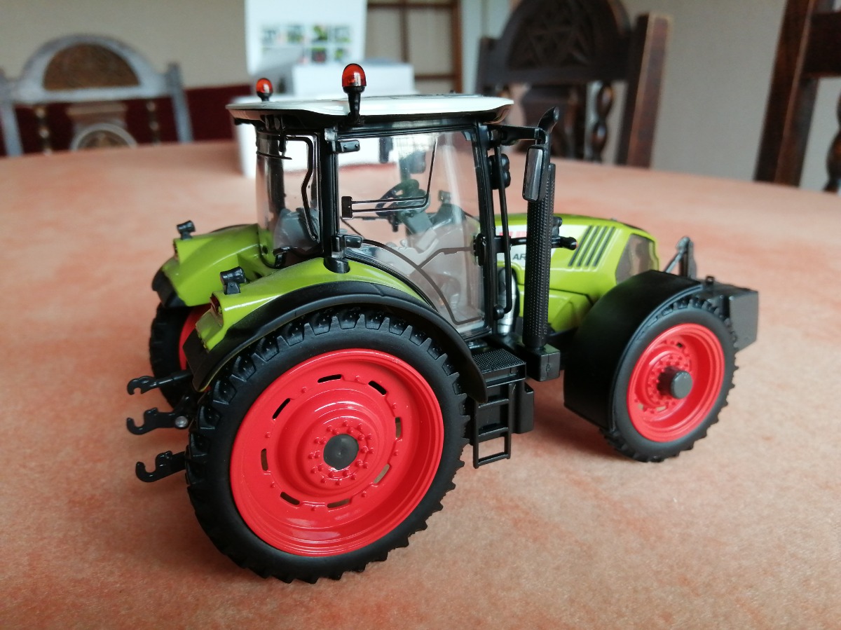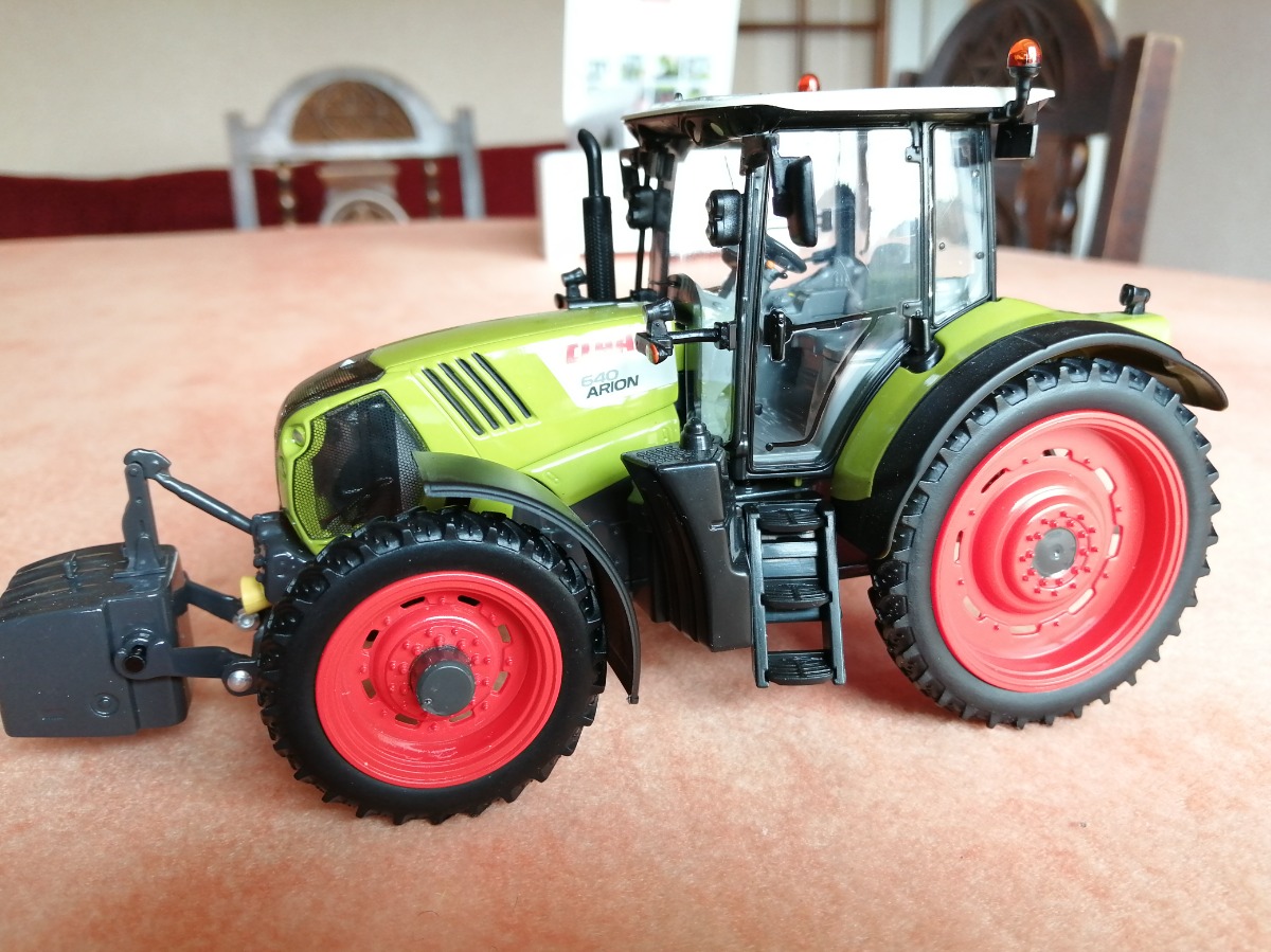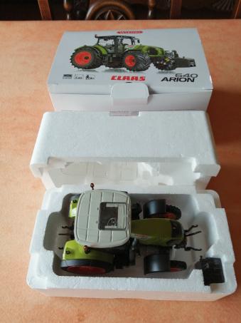 CLAAS Arion 640. Modification en roues étroites artisanales. Miniature et sa boite comme neuve. Uniquement exposée en vitrine.