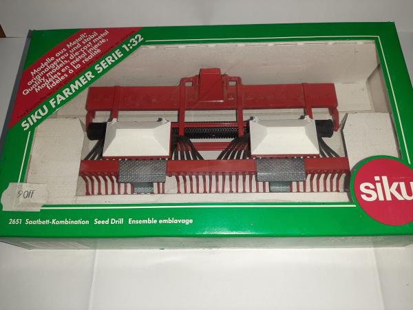 Bonjour, je vends un semoir siku (2651). Le semoir est en état moyen : quelques éléments semeurs manquants (voir photo).