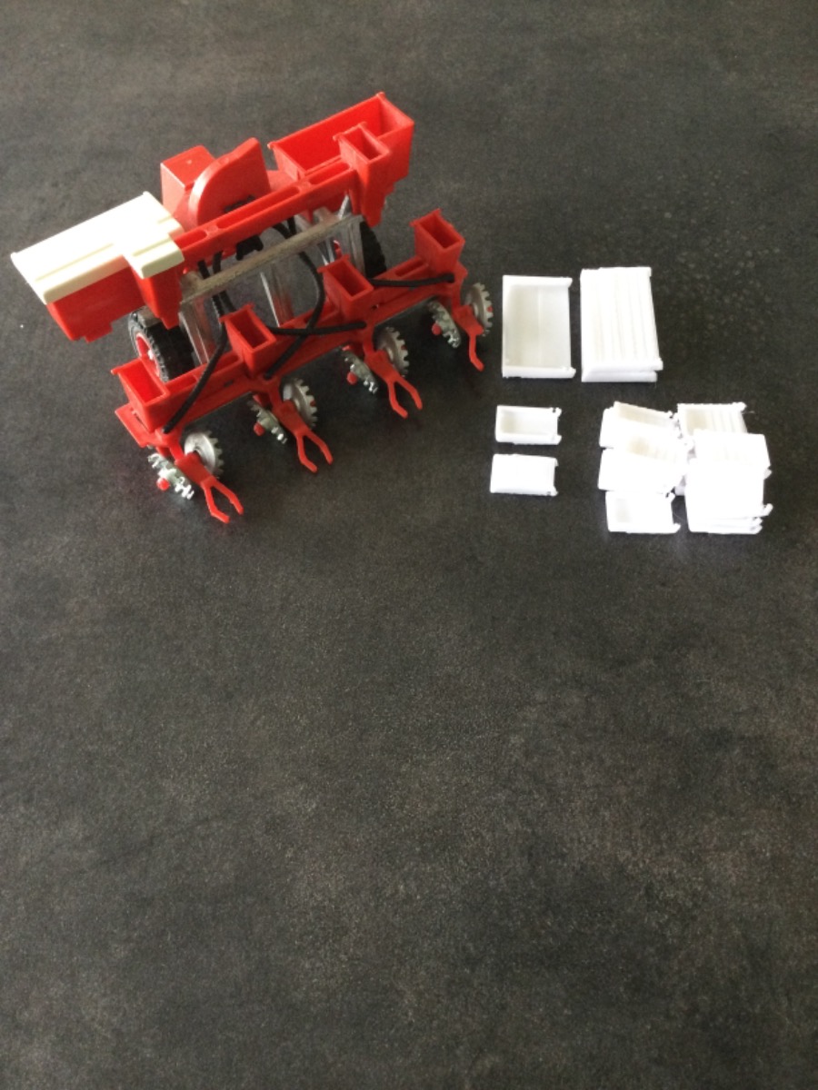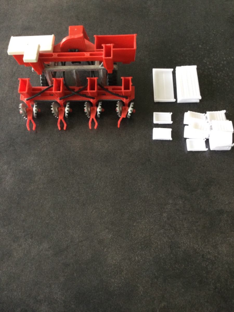 Semoir a Mais 4 rangs + fertiliseurs vintage + lot de capots fait à l imprimante 3D. Dans l état. Envoi rapide et emballage soigné.