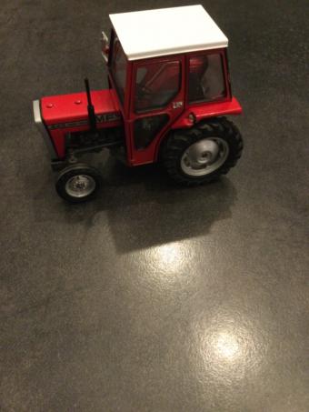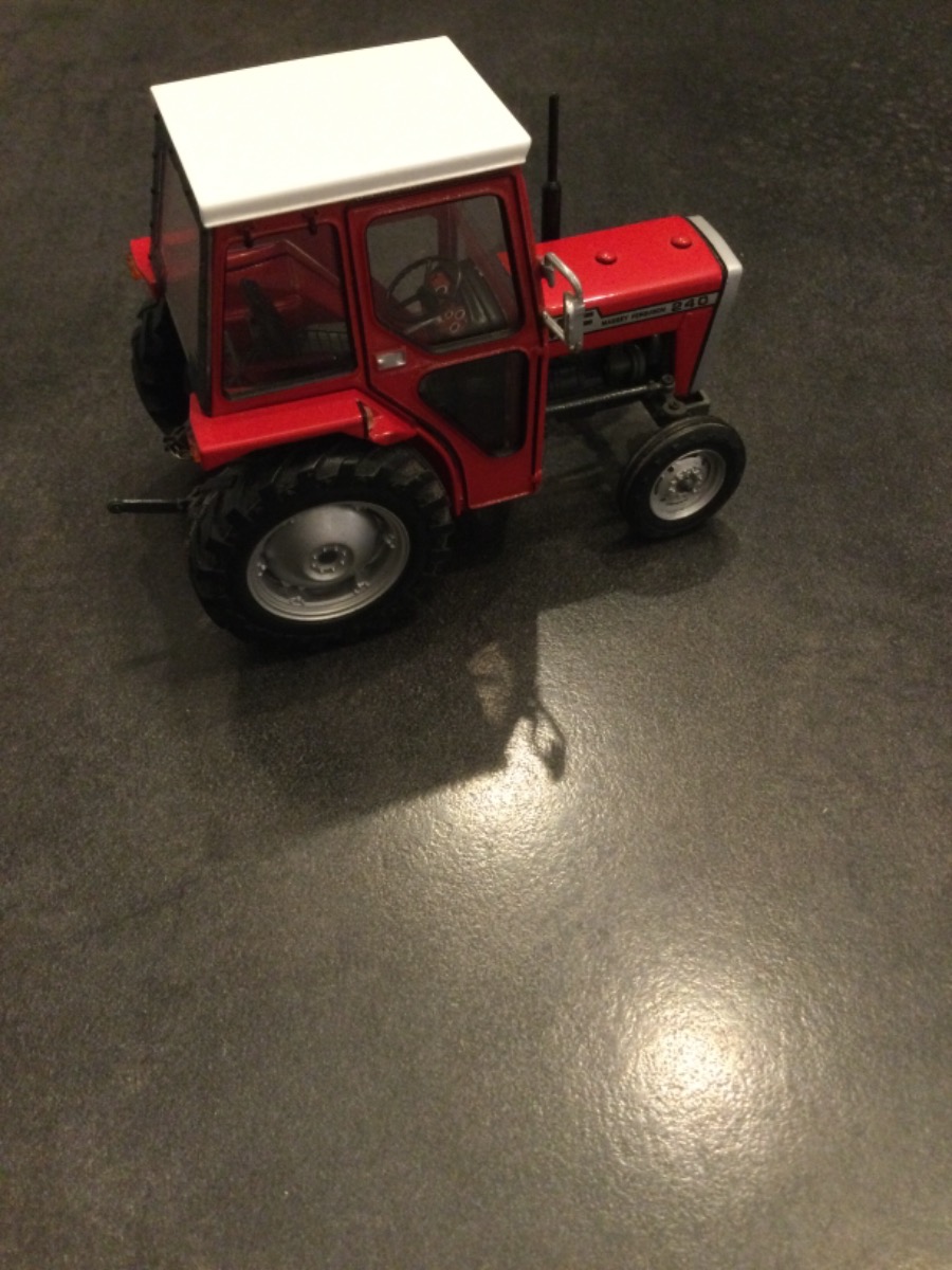 beau tracteur MF 240 Anglais ( rétroviseur à droite) .excepté 1 bras de relevage cassé,il est très propre. envoi rapide et emballage soigné.