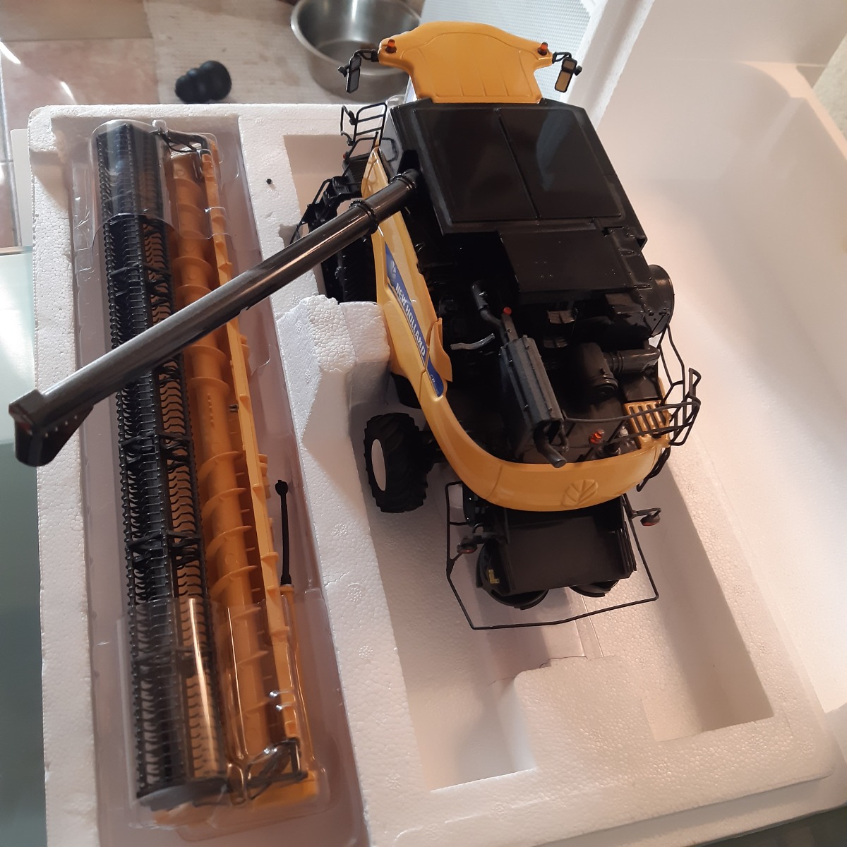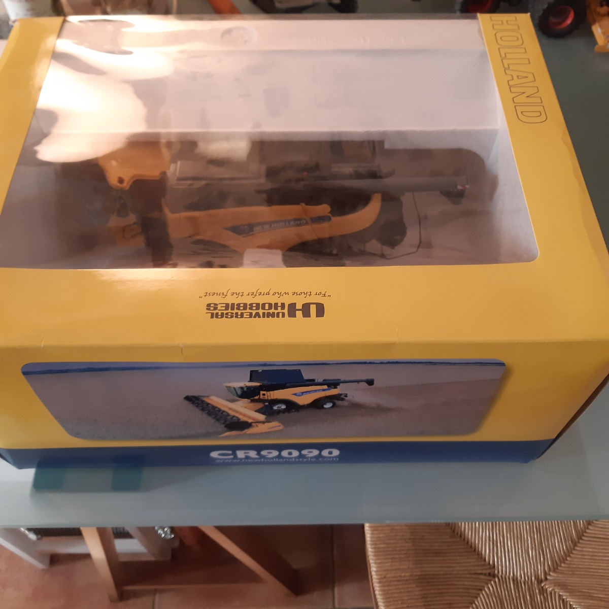 Moissonneuse newholland CR 9090 à chenilles 1ere génération, en parfait état dans sa boîte d'origine également en parfait état.