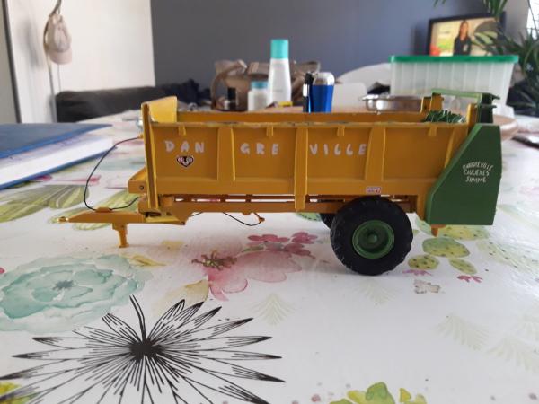 Epandeur à fumier dangreville en bon état manque cardan et la rehausse avant et petit éclat de peinture sur le haut des côté