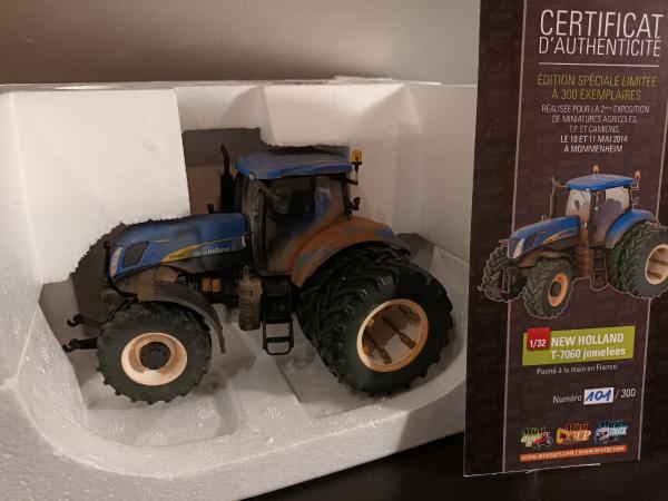 Vend tracteur NEW HOLLAND T 7060 jumelé arrière patiné édition limitée avec certificat. Vendu avec triangle avant et masse avant.