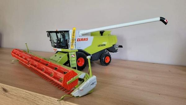 Bonjour, voici une CLAAS Lexion 770 Norev en très bon état, manque juste les guides releveur au extrémités de la coupe.