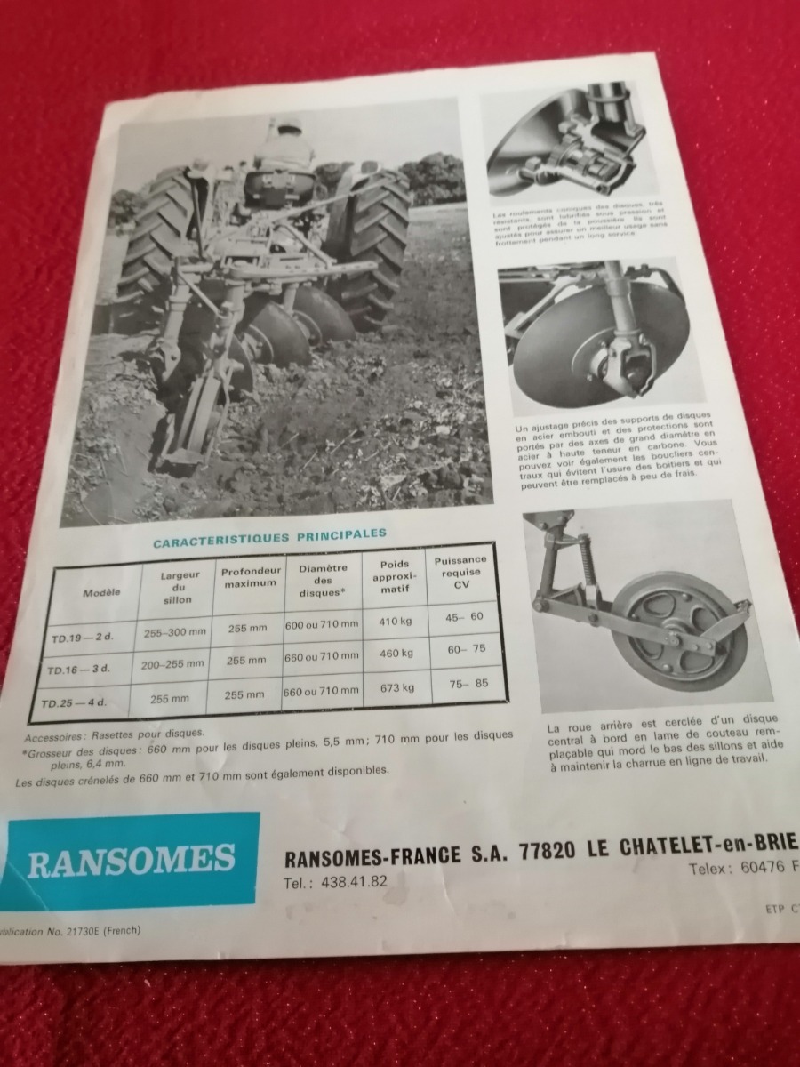Prospectus charrues réversible à disques Ransomes deux feuilles recto/verso bon état ,voir photos.